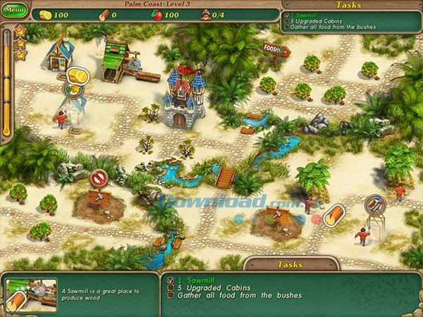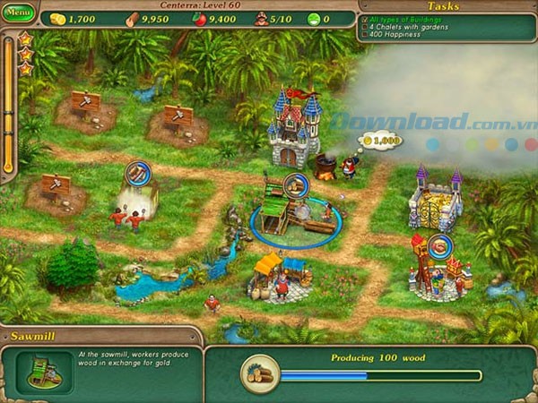 Trước khi bắt đầu, hãy kiểm tra danh sách các công việc cần hoàn thành. Sau đó, nhấp chuột vào khu vực xây dựng và chọn công trình phù hợp để bắt đầu quá trình. Có thể bạn sẽ cần các cabin và khu nhà để sản xuất vàng, hoặc một máy cưa để khai thác gỗ. Bất kể phương pháp nào, hãy đảm bảo bạn có đủ nguồn vàng cần thiết. Bên cạnh đó, bạn có thể thu thập thêm tài nguyên bằng cách di chuyển con trỏ chuột lên phía trên màn hình. Luôn giữ cho nhân lực của mình bận rộn để kho báu của bạn được lấp đầy nhanh chóng.