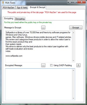 Bên cạnh đó, RSA-Tools còn cung cấp tính năng mã hóa và giải mã cho cả tập tin lẫn văn bản, cũng như hỗ trợ phục hồi các khóa RSA bị mất hoặc hỏng.