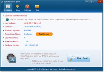 Safe Returner là công cụ chống phần mềm độc hại mạnh mẽ có khả năng loại bỏ trojan, worm, adware, spyware khi các phần mềm diệt virus thông thường không phát hiện hoặc gỡ bỏ chúng hiệu quả.