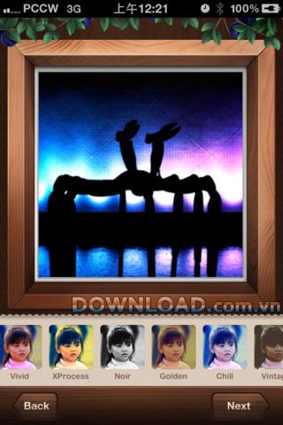 Một loạt 8 hiệu ứng ảnh đơn giản được cung cấp, cho phép người dùng chỉnh sửa ảnh một cách nhanh chóng và dễ dàng.
