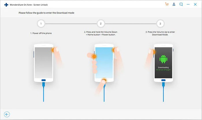 Bước 4: Sau đó, đưa điện thoại vào chế độ Download Mode. Hãy tắt nguồn điện thoại hoàn toàn, rồi đồng thời nhấn và giữ nút giảm âm lượng, nút nguồn và nút home (nếu có) theo hướng dẫn cụ thể.