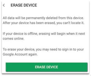 - Có khả năng mất dữ liệu. Lựa chọn Erase Device sẽ đưa điện thoại trở về cài đặt gốc, đồng nghĩa với việc khóa màn hình sẽ bị gỡ bỏ, nhưng tất cả dữ liệu chưa được sao lưu sẽ bị xóa hoàn toàn.