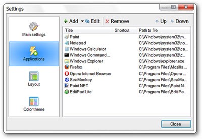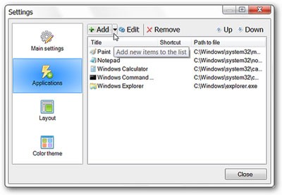 Sau khi các ứng dụng được thêm thành công, bạn có thể loại bỏ ứng dụng, thêm ứng dụng mới hoặc thay đổi vị trí của chúng từ bảng Applications. Nhấp Close khi đã hoàn tất và kiểm tra kết quả.