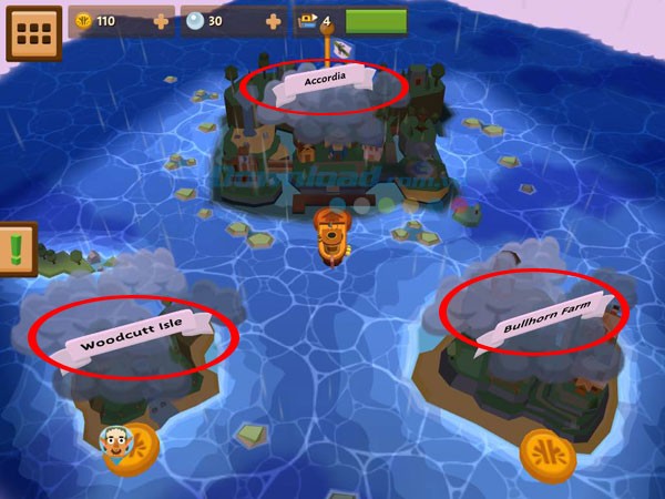 Di chuyển: Tàu của bạn sẽ neo đậu tại mọi bến cảng. Để khởi hành, chỉ cần chạm vào tàu và bạn sẽ được chuyển đến bản đồ thế giới. Sau đó, chọn bất kỳ hòn đảo nào trên bản đồ để đến đó.