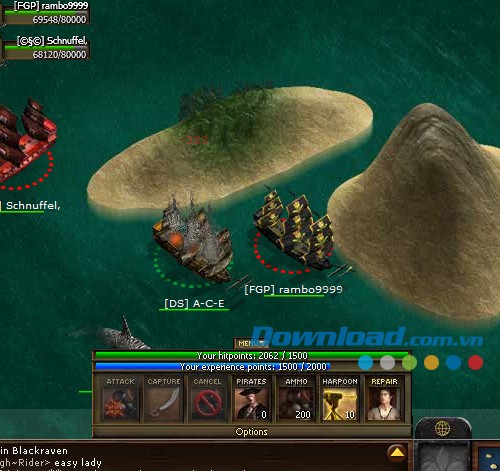 Bên cạnh đó, game thủ Seafight còn phải đối mặt với những cuộc tấn công từ các tàu cướp biển đối thủ. Mỗi trận chiến thắng sẽ mang lại vàng và tài nguyên quý giá cho phe của bạn.