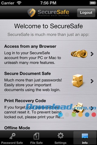 SecureSafe được công nhận là một trong những trình quản lý mật khẩu và tệp tin trực tuyến uy tín nhất, cung cấp mức độ bảo mật cao cho người dùng các thiết bị iDevice.