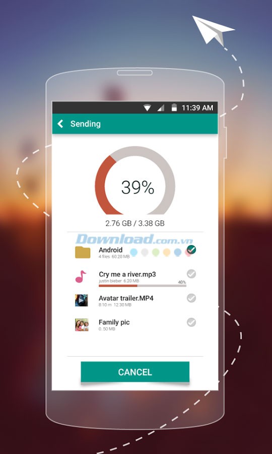 Bạn không cần phải sử dụng các phương tiện truyền dữ liệu truyền thống như USB hay pen-drive nữa. Ứng dụng cho phép chia sẻ file, thư mục và nhiều định dạng file khác nhau mà không yêu cầu kết nối Wifi hoặc phát sinh cước phí dữ liệu di động.