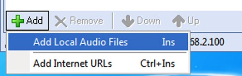 Chương trình cho phép bạn tạo một danh sách nhạc từ bất kỳ thiết bị nào, và âm thanh sẽ được phát ra từ loa được chia sẻ. Ví dụ, nếu bạn có hai máy tính: máy thứ nhất (với địa chỉ IP là 192.168.2.100) và máy thứ hai (với địa chỉ IP là 192.168.2.101), trong đó loa được kết nối với máy thứ hai. Bạn cần cài đặt và khởi chạy Share Speaker Player trên cả hai máy tính. Trên máy tính thứ nhất, hãy nhấn nút Add ở phía dưới giao diện chương trình, sau đó chọn Add Local Audio Files để chọn các tập tin nhạc lưu trữ trên ổ cứng, hoặc chọn Add Internet URLs để thêm đường dẫn trực tiếp đến các tập tin nhạc trên Internet.