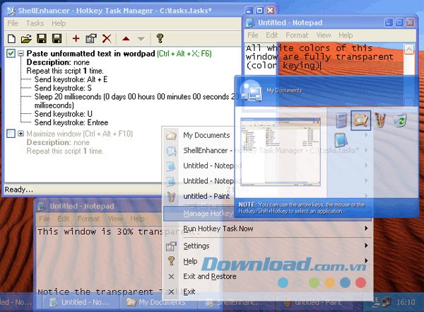 Bên cạnh đó, Shellenhancer còn hỗ trợ nhiều tính năng hữu ích khác như làm trong suốt cửa sổ (Transparency), cố định vị trí cửa sổ (Lock Position), hiển thị cửa sổ luôn ở trên cùng (Always On Top), duy trì trạng thái hoạt động của cửa sổ (Keep Focus).