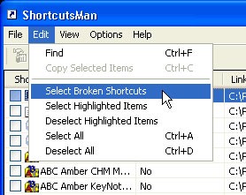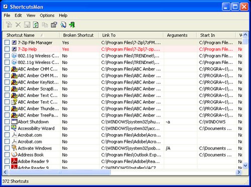 Các shortcut không còn hoạt động (thường do các tập tin liên quan đã bị xóa hoặc đường dẫn không chính xác) sẽ được tự động đánh dấu bằng màu hồng trong danh sách, hoặc cột Broken Shortcut sẽ hiển thị trạng thái Yes.