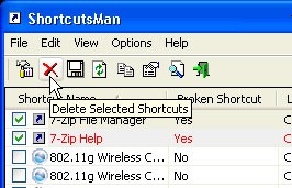 Để loại bỏ các shortcut bị hỏng, bạn chỉ cần chọn các hộp kiểm tương ứng với các shortcut cần xóa, sau đó nhấn vào nút Delete Selected Shortcuts trên thanh công cụ.