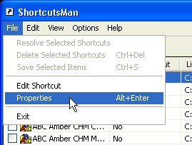 Để xem thông tin chi tiết của một shortcut cụ thể, đánh dấu chọn shortcut đó và chọn Properties từ trình đơn File. Điều này hữu ích khi bạn muốn xem các cột thông tin không hiển thị trong giao diện chính.