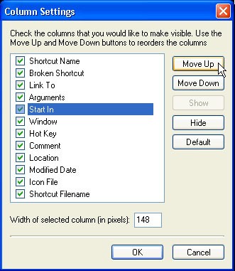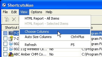 ShortcutsMan cho phép bạn tùy chọn các cột thông tin hiển thị trên cửa sổ chính. Từ trình đơn View, chọn Choose Columns. Hộp thoại Column Settings sẽ xuất hiện, trong đó bạn có thể chọn hoặc bỏ chọn các cột muốn hiển thị. Bạn cũng có thể thay đổi thứ tự của các cột bằng cách sử dụng các nút Move Up và Move Down. Nhấn OK để lưu các thay đổi.