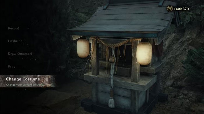 Sau khi tương tác với đền thờ, lựa chọn mục "Change Costume" sẽ cho phép bạn thay đổi trang phục của Hinako một cách dễ dàng và nhanh chóng.