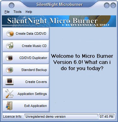 SilentNight Micro CD Burner là chương trình ghi đĩa nhỏ gọn, cho phép ghi dữ liệu lên các đĩa CD/DVD, hỗ trợ chuẩn Audio CD, ISO và xóa đĩa CDRW.