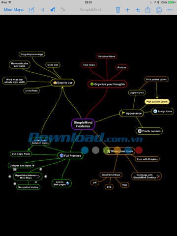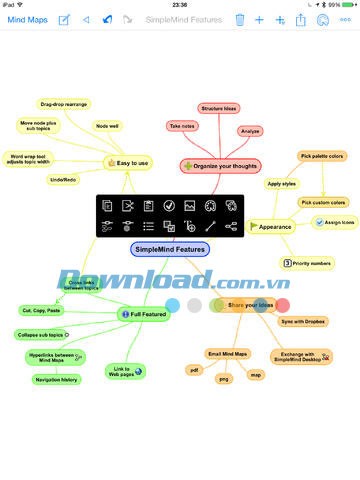 Ứng dụng này giúp chuyển đổi điện thoại thông minh và máy tính bảng iDevice của bạn thành một thiết bị hỗ trợ thảo luận cởi mở, thu thập các ý tưởng sáng tạo và xây dựng cấu trúc suy nghĩ một cách logic.