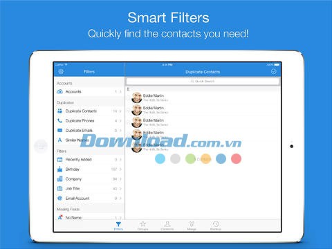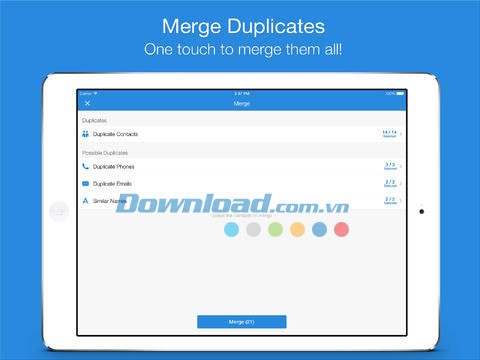 - Hợp nhất tất cả các số liên lạc trùng lặp chỉ với một thao tác.