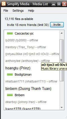 Simplify Media cho phép bạn tận hưởng thế giới âm nhạc ở mọi nơi có kết nối wifi. Bạn có thể truy cập kho nhạc cá nhân trên máy tính hoặc chia sẻ nhạc từ máy tính của bạn bè với một nhóm tối đa 30 người.