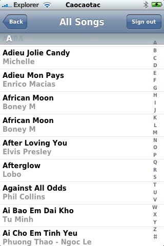 - Khả năng tìm kiếm bài hát bị giới hạn, chỉ cho phép lựa chọn theo thứ tự chữ cái.