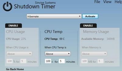- : Nếu nhiệt độ CPU đạt đến mức nhiệt độ bạn thiết lập trong một khoảng thời gian nhất định, Shutdown Timer sẽ thực hiện công việc của mình.