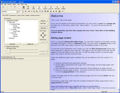 Enersoft SiteGenWiz cho phép bạn xây dựng các trang web HTML một cách nhanh chóng, mà không đòi hỏi bất kỳ kiến thức lập trình nào. Phần mềm này được trang bị khả năng tạo ra các trang web hoàn chỉnh, bỏ qua những thao tác viết code thủ công phức tạp.