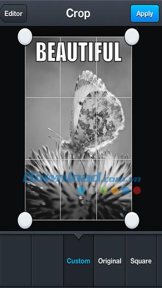Thay đổi khung ảnh, điều chỉnh kích thước và xoay ảnh một cách nhanh chóng nhờ các công cụ trực quan và các tùy chọn cắt ảnh được tích hợp sẵn, đặc biệt là tỷ lệ khung hình vuông được nhiều người ưa chuộng.