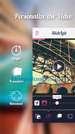 Với giao diện trực quan và dễ sử dụng, SlideLab for iOS cho phép người dùng tùy chỉnh video theo sở thích, thêm hiệu ứng chuyển cảnh, âm nhạc và văn bản.