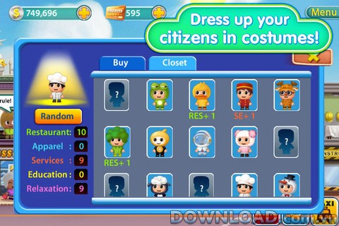- Tùy chỉnh diện mạo và trang phục cho các nhân vật công dân.