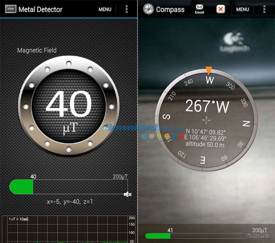 Tiếp theo, khám phá công cụ dò tìm kim loại (trong mục Compass) – một tính năng hoàn toàn mới lạ và vô cùng thú vị. Bằng cách tận dụng cảm biến từ trường tích hợp trong điện thoại, chương trình có thể phát hiện từ trường do các vật thể xung quanh tạo ra.