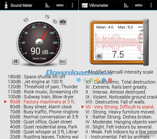 Sound Meter (đo mức độ âm thanh): Chức năng này có thể không hoàn toàn chính xác, vì chương trình sử dụng micro của điện thoại để đo tiếng ồn theo đơn vị đề-xi-ben. Micro thường được nhà sản xuất điều chỉnh để thu giọng nói rõ ràng nhất. Đối với Vibrometer (đo độ rung), bạn có thể đo độ rung của điện thoại, cơ thể hoặc thậm chí cả địa chấn…