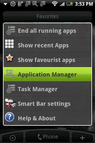 SmartBar còn mang đến khả năng quản lý ứng dụng tốc độ cao, với nhiều tính năng và tiện lợi hơn bất kỳ phần mềm quản lý ứng dụng nào khác. Ví dụ, các chức năng hữu ích như: tạo danh sách ứng dụng thường dùng (Favourite Apps), ghim ứng dụng lên thanh trạng thái (Pin app to status bar), tạo shortcut cho ứng dụng vào phím Search hoặc Camera.