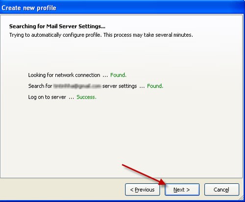 Phần mềm sẽ tự động tìm kiếm máy chủ email của bạn thông qua kết nối internet. Sau khi kết nối và đăng nhập thành công, hãy nhấn nút Next để tiếp tục.