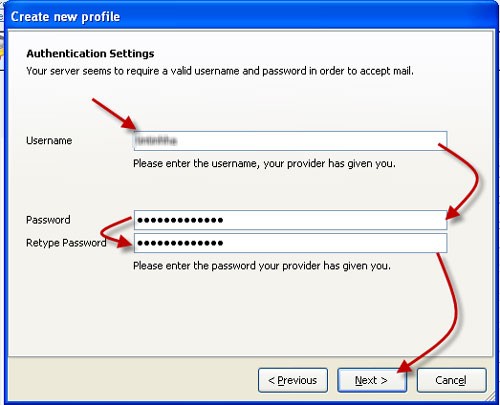 Tiếp theo, nhập tên đăng nhập (của dịch vụ email bạn sử dụng) và mật khẩu tài khoản email của bạn vào các trường tương ứng, sau đó nhấn Next.