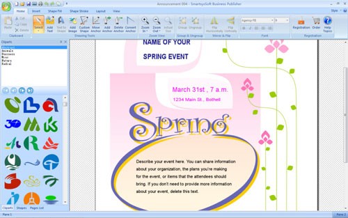 SmartsysSoft Business Publisher cung cấp một bộ sưu tập phong phú các clip art, logo, hình dạng và biểu tượng đẹp mắt với nhiều kiểu họa tiết khác nhau, giúp bản thiết kế trở nên độc đáo và ấn tượng.