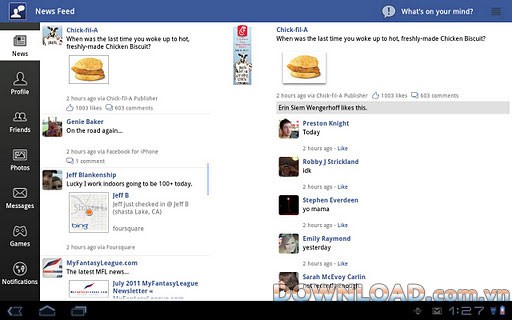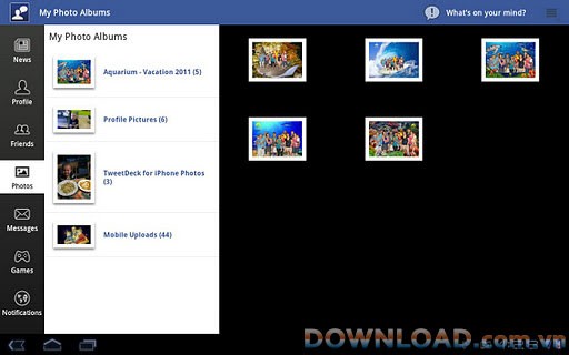 Ứng dụng cho phép bạn xem ảnh, các đường dẫn liên kết, trạng thái, và thông tin check-in của bạn bè.