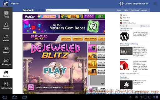 Ứng dụng cho phép người dùng tương tác trực tiếp với nền tảng Facebook một cách dễ dàng.