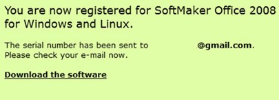 Tiếp theo, hãy kiểm tra hộp thư đến của bạn và tìm kiếm email có tiêu đề SoftMaker Office for [Windows hoặc Linux tùy theo lựa chọn ban đầu]: Serial number and download.