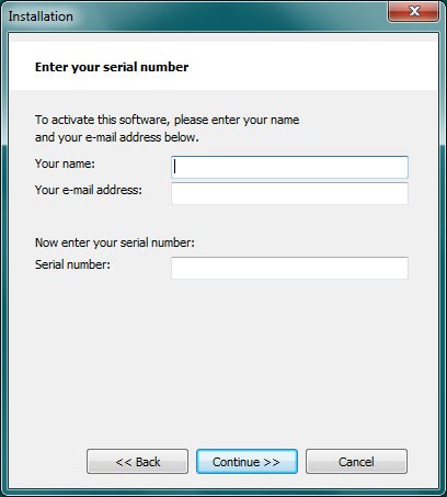 Khi tiến hành cài đặt, việc nhập chính xác các thông tin như Name, E-mail và Serial number là vô cùng quan trọng.