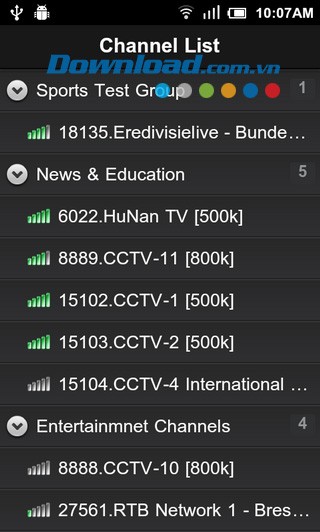Chọn kênh bạn muốn xem từ danh sách, ứng dụng sẽ tự động bắt đầu phát. Giống như phiên bản dành cho máy tính, bạn cần kiên nhẫn chờ đợi trong lần tải đầu tiên để ứng dụng thực hiện bộ nhớ đệm. Hãy chọn tốc độ kênh phù hợp với tốc độ đường truyền internet của bạn.