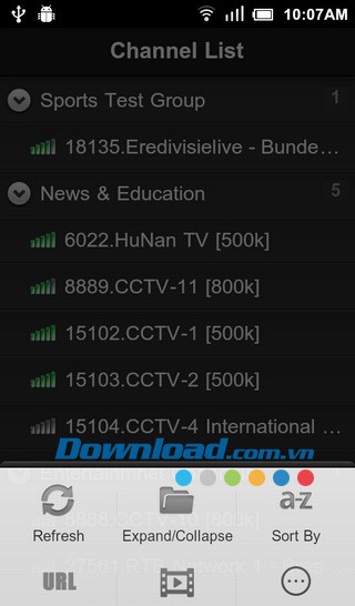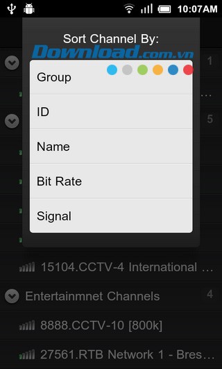 - Sort By: Sắp xếp kênh theo các tiêu chí: Nhóm, ID, Tên, Tốc độ, Chất lượng tín hiệu.