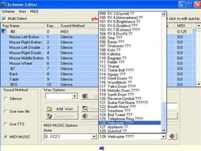 Điểm độc đáo nhất của SKM là khả năng cho phép bạn tạo ra các âm thanh đặc trưng của riêng mình. Hãy nhấn vào “New Scheme” để mở bảng “Scheme Editor”. Tại đây, bạn sẽ thấy danh sách đầy đủ các phím trên bàn phím và chuột, cho phép bạn xây dựng các giai điệu riêng biệt.