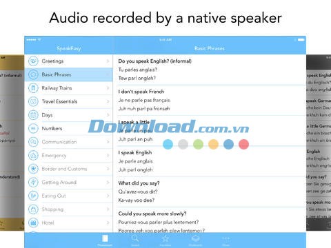 Ứng dụng bao gồm hàng trăm cụm từ thiết yếu cho bất kỳ ai học ngoại ngữ. Dù bạn cần chuẩn bị nhanh chóng cho một chuyến đi hay đang bắt đầu học một ngôn ngữ mới, SpeakEasy for iOS luôn là lựa chọn tối ưu với những cấu trúc cần thiết.