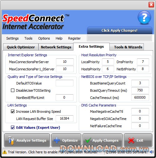Phần mềm này thay đổi các thiết lập trong Registry của máy tính và tối ưu hóa các thông số TCP/IP, giúp tận dụng tối đa các ưu điểm của mạng để đạt được tốc độ Internet nhanh hơn.