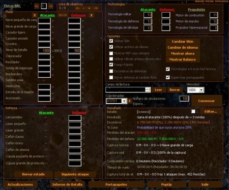 Chỉ cần nhập thông tin về số lượng tàu chiến, hệ thống phòng thủ và cấp độ công nghệ của cả hai phe (bao gồm công nghệ vũ khí, công nghệ khiên chắn, và công nghệ giáp), bạn sẽ nhanh chóng nhận được kết quả dự đoán của trận đấu.