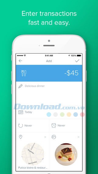 Ứng dụng cho phép bạn thêm thông tin địa điểm cho mỗi giao dịch, ví dụ như nhà hàng, quán bar, cửa hàng hoặc bất kỳ địa điểm quen thuộc nào.