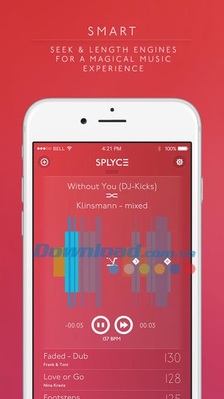Tải ứng dụng Splyce miễn phí ngay hôm nay để khám phá âm nhạc theo một phong cách hoàn toàn mới – sở hữu một trình phát nhạc cực kỳ thu hút với sức mạnh của một DJ thực thụ!