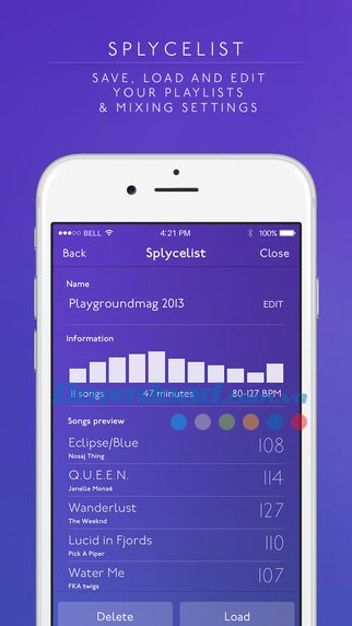 Được phát triển đặc biệt dành cho iPhone và iPad, Splyce cho phép bạn dễ dàng lựa chọn những bài hát yêu thích, sắp xếp chúng một cách khoa học thông qua sự hỗ trợ của BPM và hình ảnh trực quan. Chỉ cần nhấn Play, bạn sẽ được tận hưởng không gian âm nhạc chất lượng cao, sống động như đang ở trong một rạp hát tại gia!