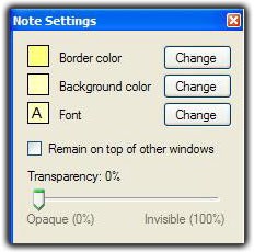 Cửa sổ "Note Settings" sẽ mở ra. Tại đây, bạn có thể thay đổi màu sắc của giấy nhớ, font chữ của nội dung và các thuộc tính khác.