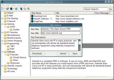 StorURL 2.5 là một tiện ích nhỏ gọn, được thiết kế để giúp bạn lưu trữ toàn bộ các địa chỉ trang web ưa thích, cùng với tiêu đề và phần mô tả chi tiết. Ứng dụng này cung cấp một phương thức quản lý các đường dẫn web một cách khoa học và có tổ chức, thông qua một giao diện trực quan, dễ sử dụng.