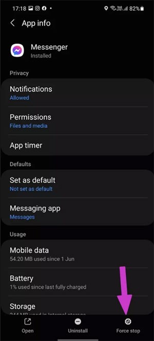 Nếu ứng dụng Messenger hoạt động không ổn định trên thiết bị Android, bạn có thể thử đóng cứng ứng dụng và khởi động lại.